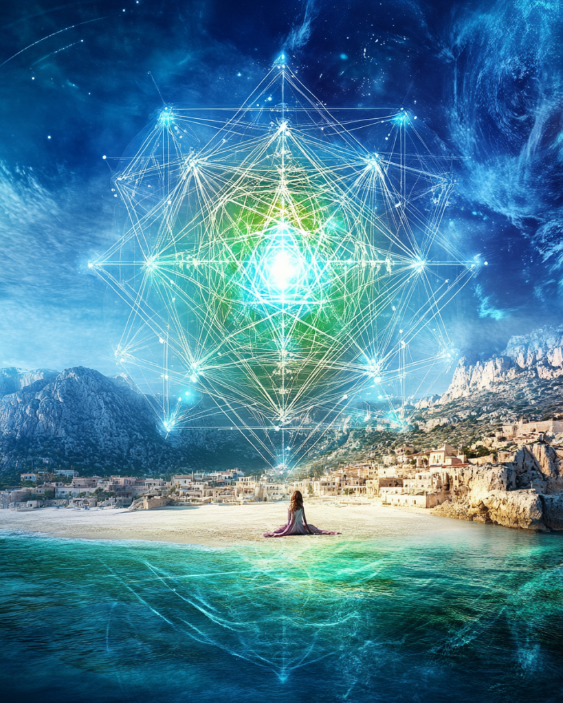 Another major initiation is learning to anchor Merkaba energies in the landscape. These allow interdimensional flows between sea and land, through Time and Space. Creating etheric pyramid structures which facilitate communication between civilisations long gone, such as Atlantis, the South American cultures, the ancient cultures of the British Isles, Europe, Egypt, Scandinavia, India, China, etc., is also what you learn with this initiation. It is a light body activation working with higher frequencies of the Mother’s field.