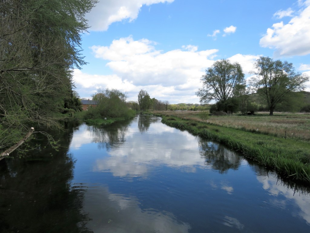 As I stood watching the river flowing towards me, the clouds and blue skies reflected in the water, the fish symbol flowed into my centre (behind my navel). I saw a hand popping a young fish into the bottle I held in my hands. The fish is the symbol of male fertility as it flows through the water and on a previous earth-working with the river, Chris, Eartha and I had anchored that energy to the river from the Brooks centre in Winchester.