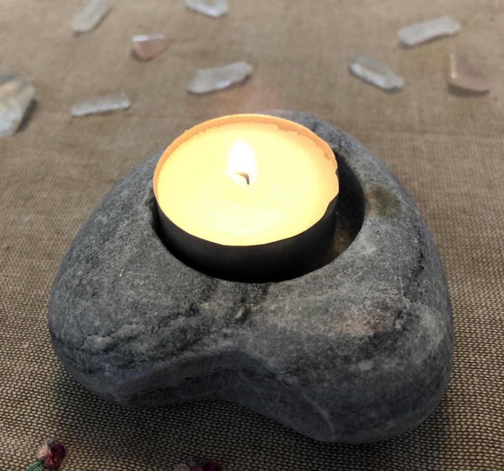 When I am ready to do the reading, or the healing, I set up a crystal grid, intuitively choosing the crystals. I use candles and crystals in the readings, placing them in the pattern I am shown by my guides. There is a connection between the energy of the stones and the energy of the flames which feels ancient to me. It brings me to a place of stone circles and fire ceremonies. The stones become the holder/container of the energy coming in, just as the Stone circles hold and contain energy. The candles I use are also held in stone.