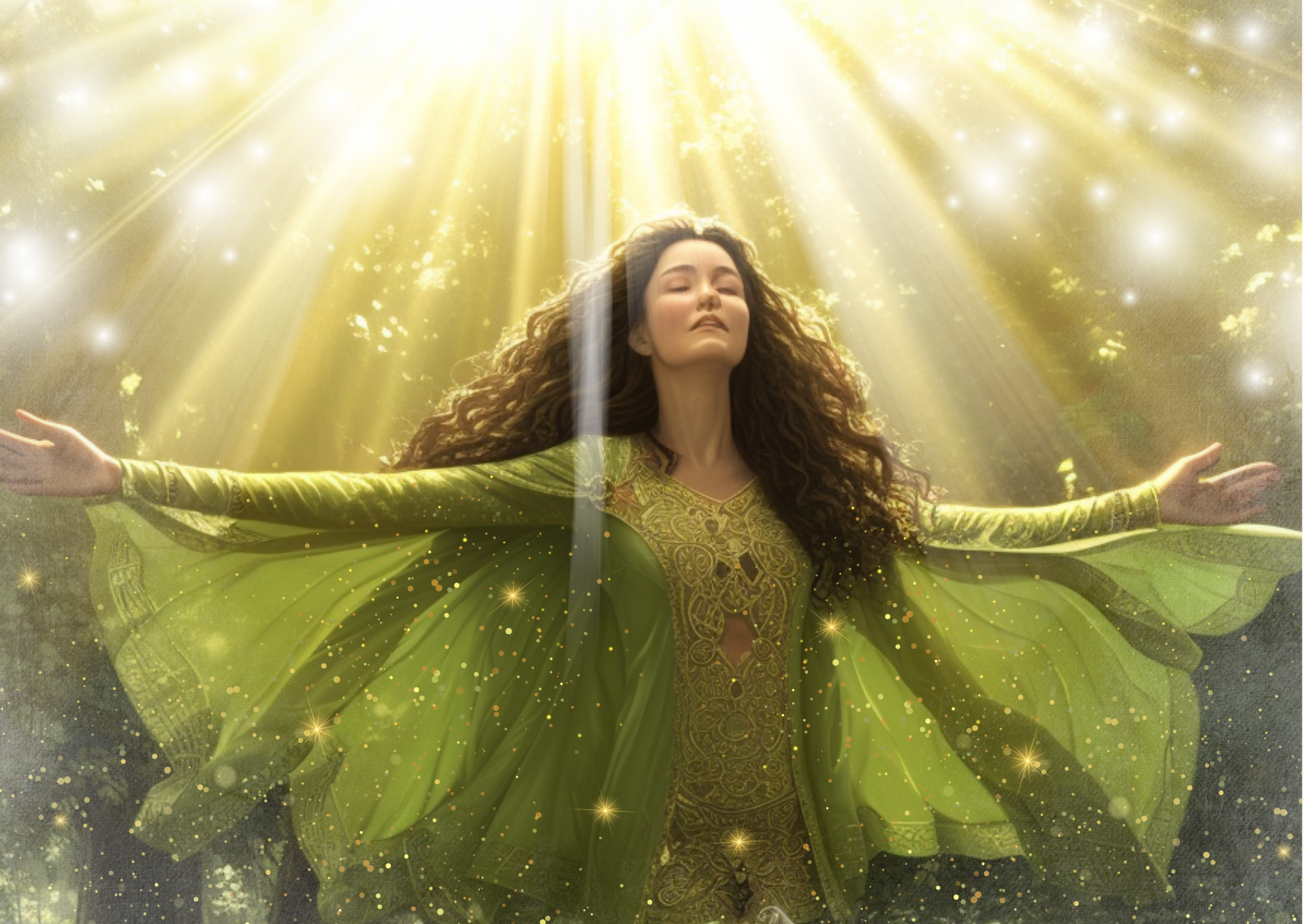 In the tree, there now appeared a gold key, and it unlocked that point where the two cones/vortices meet. Another line of energy then ascended through the body, and descended at the same time. This was about giving the ability to absorb all the energies, both vertically and horizontally, of tree beingness. How they are all connected to each other, from the smallest shrub to the tallest tree. Working at that level. Where that point meets is where the trees are. Between heaven and earth.