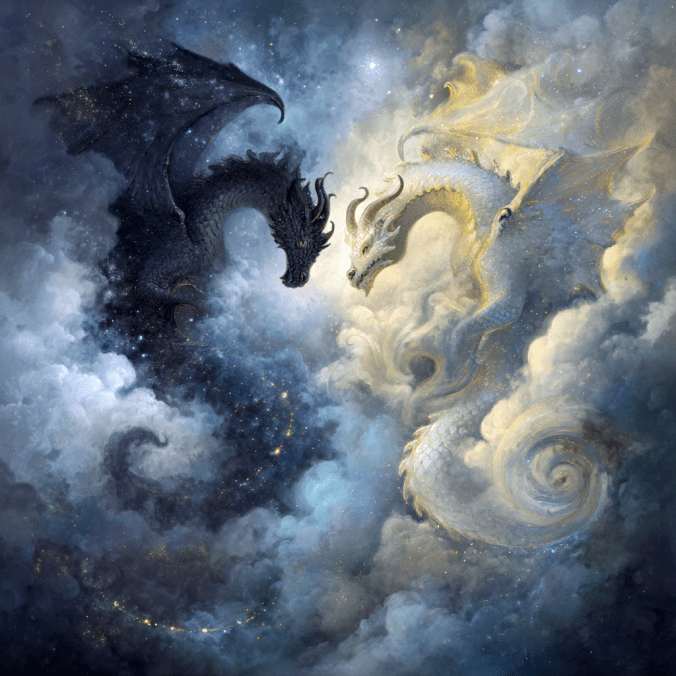 The black dragon then moved into the black vortex; the white dragon into the white one, meeting in the centre. But this time it was about Will. Moving into the Divine Will of Heaven and Earth. Holding the balance of earth power, via the black dragon, and the divine inspiration from above, through the white. The black dragon is the deep unknown, the potential, holding deep power. We have, as healers, to hold that balance within us. To be able to wield a portion of the earth’s power while being divinely inspired, using both these energies to create a new life, both for ourselves and for the planet. Both these dragon energies work within the same creative earth energies but with very different foci. But they are perfect together.