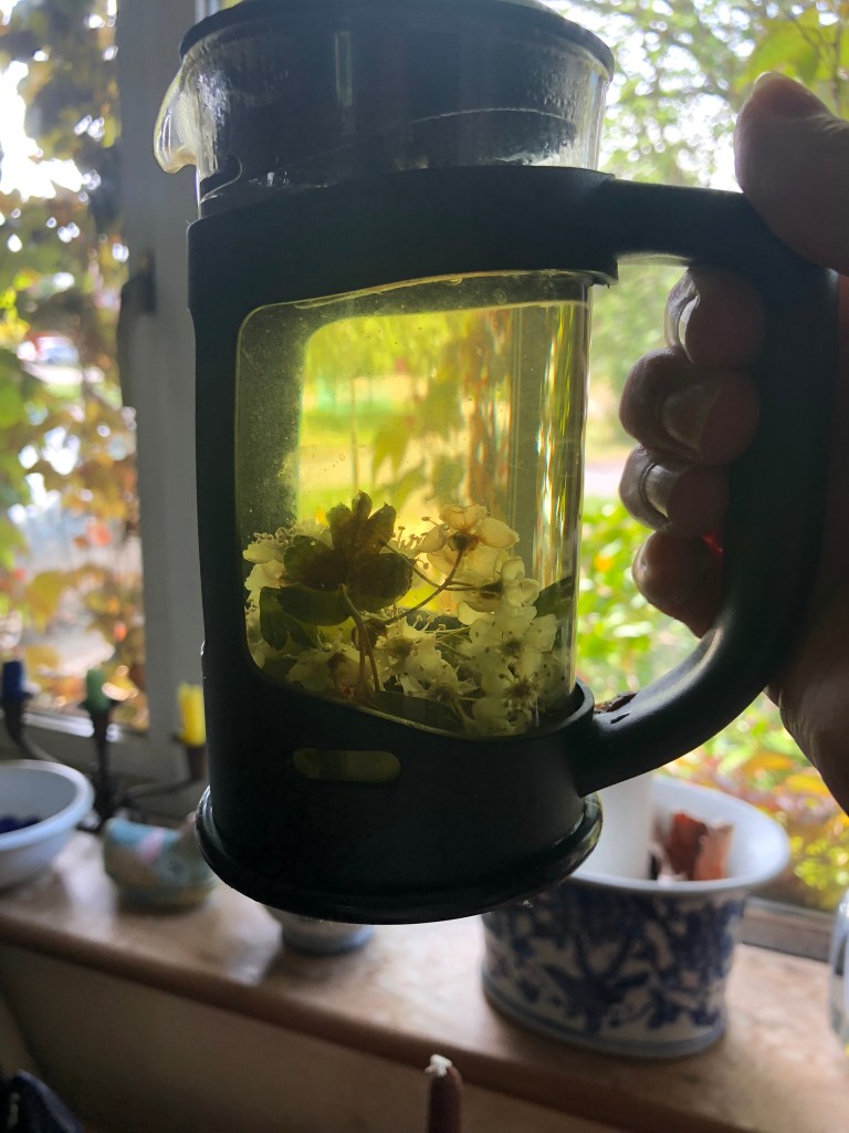 When we had finished, we noticed seams of gold sap, some of it crystallised, in the creases of the bark. So we took some home to make an incense mix. Sap from a tree you’ve worked on emits an energetic aroma as well as its gorgeous fragrance, filling your space with the energy of the tree. We will collect more on our next visit. Apparently, you can also make tea with the sap, so I will be trying that!
