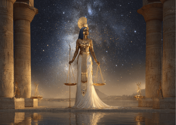 Maat is the goddess of Justice, of cosmic order and truth. She weighs the heart after death. But also is the voice of your own conscience, your soul, helping you to make wise choices. She is anchored into the throat chakra. Here she speaks her truth, but she speaks it in a way that others can hear us. It is not always easy to say what we feel, but she teaches us how to.