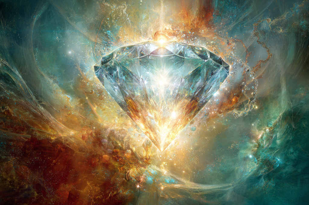 Therefore, each level of the Gaia Method Earthways comes as a geometry. The first level, the foundation – on which subsequent levels are built – is a diamond shape and within that main diamond there four other diamonds. The top diamond is made of another set of diamonds, the Diamond Merkaba, within which are nine smaller diamonds. Working at this foundation level builds your ability to work within the light of the Heart of the Mother. The following is how my guides explain the Diamond energies: