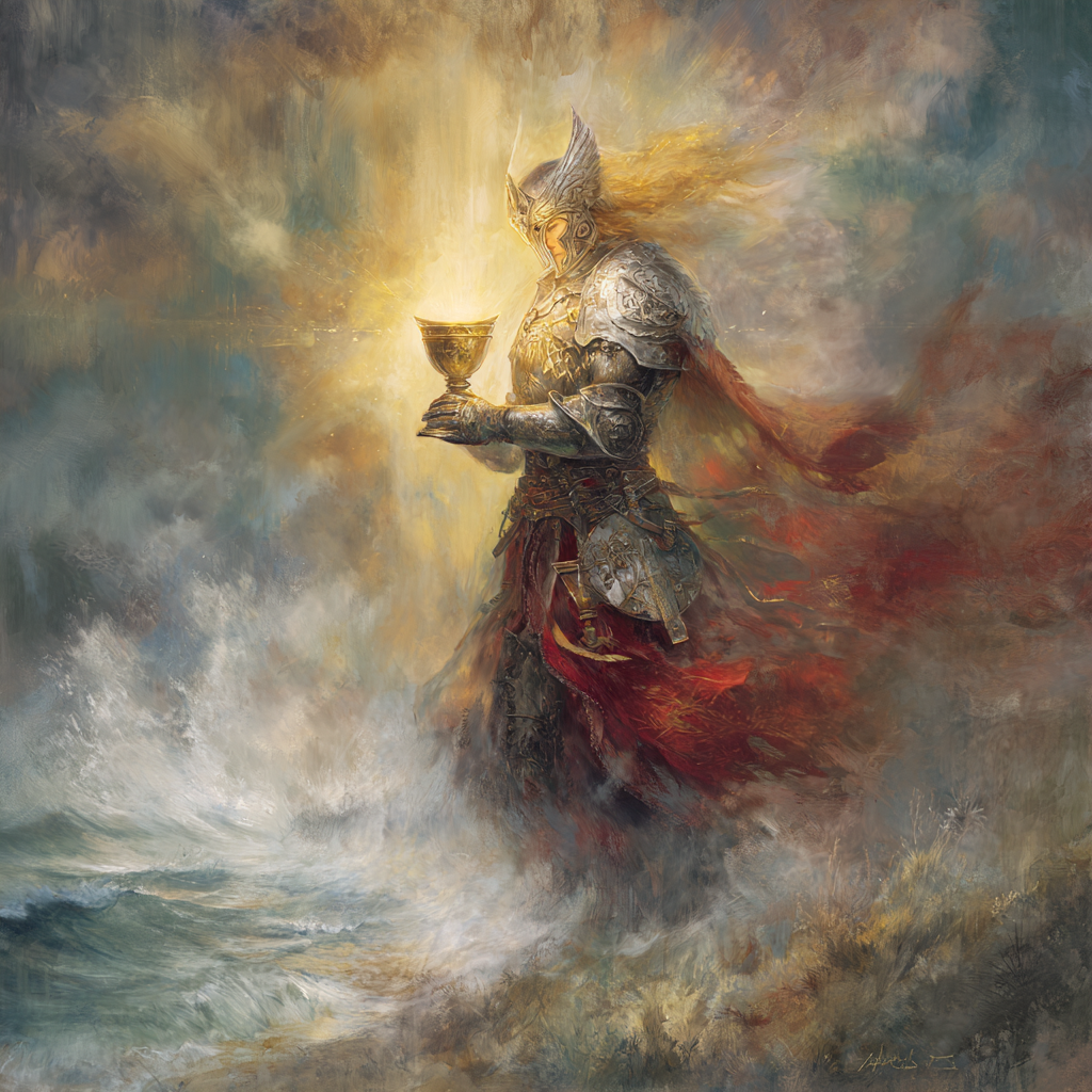 As a man, you serve the Grail as a Grail Knight, healing your own wounded masculine and connecting to the heart and Love of the Mother. The Arthurian mysteries play a mythic/energetic role here as men learn the qualities of the Knights of the Round Table and the development of compassion, serving through Divine Knighthood and ultimately Divine Kingship.