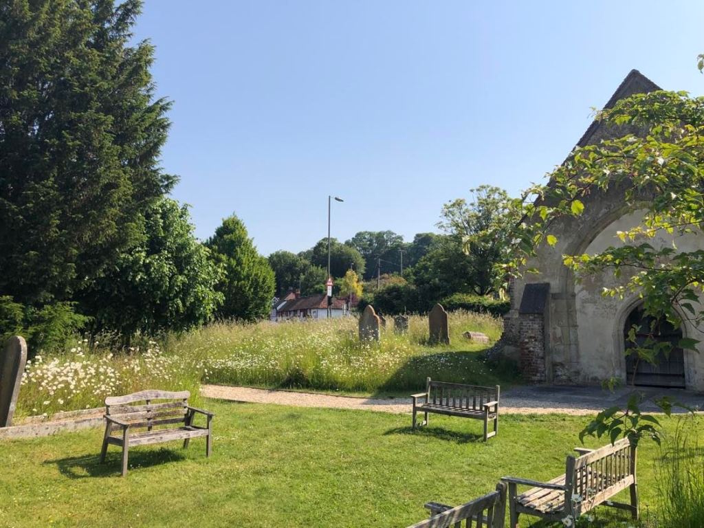 On June the 8th, with some time to spare, I paid a short visit to St Peter’s Church, or what is left of it. It sits in a lovely, green graveyard beside a pub, alongside the old main route to London, through Romsey. The original church is recorded in the Domesday book, so in its beginning it was probably a typical Saxon church constructed of wood before being rebuilt with stone. Some of the masonry from that older Saxon church was incorporated into the later church of St Peter, which was built in the 12th Century. You can read the history here.